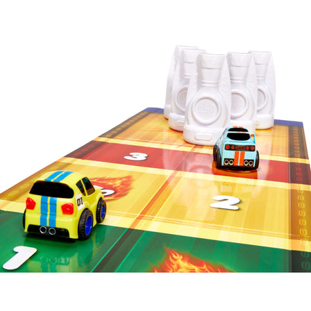 - 3 GAMES IN 1! This action-packed playset can be used three different ways: Drag Race, Bowling, and Shuffleboard. The sturdy packaging box unfolds into a unique playset and can be used for multiple stunts and tricks