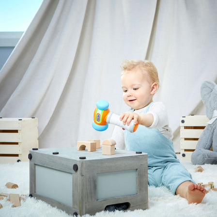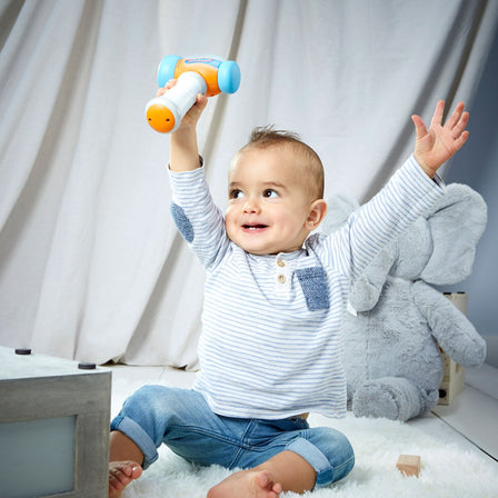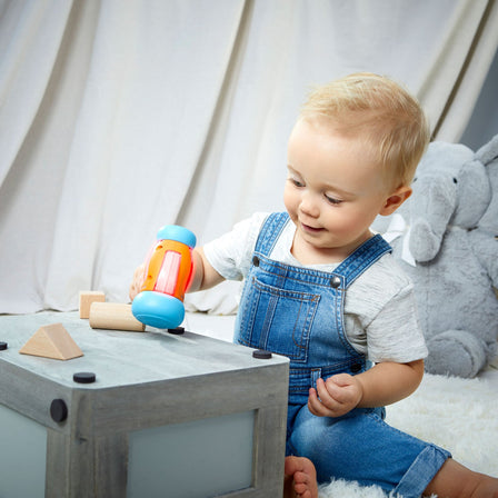 Learn and grow with the tap of a hammer. Discover colours and numbers while having fun. With two soft heads and a textured grip, this toy hammer is perfect for little hands.