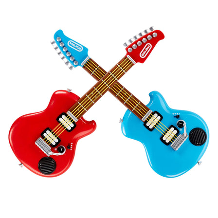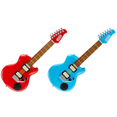 The Little Tikes My Real Jam Twice the Fun Guitars lets kids harness their inner musician. Four play modes—Play with the Band, Free Play; Solo Jam; Play Any Song with Bluetooth® —provides countless hours of musical fun. The realistically designed Electric Guitars are packed with features, while the packages double as reusable instrument cases, perfect for storing the instruments or for hitting the road as an aspiring musician.