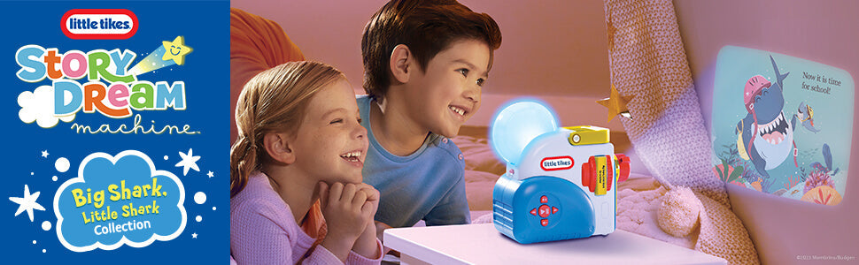 The Big Shark, Little Shark Collection for the Little Tikes Story Dream Machine includes 3 stories and 1 Big Shark character that adds light effects in nightlight mode.