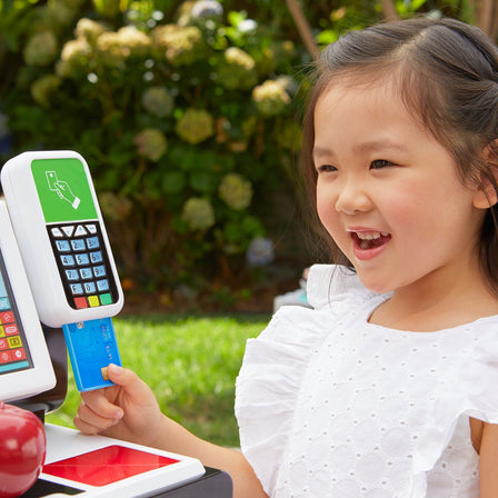 The First Self-Checkout Stand is easy to set up and includes more than 40 realistic, shopping accessories. Encourage kids to engage in imaginative pretend play with the First Self-Checkout Stand by Little Tikes!