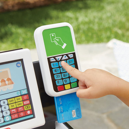 Kids can use the pretend keypad to pay for their items using a debit card.