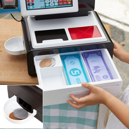 - TIME TO PAY. When they're ready to check out, kids can place bills into the cash drawer or insert the debit card into the keypad to pay.