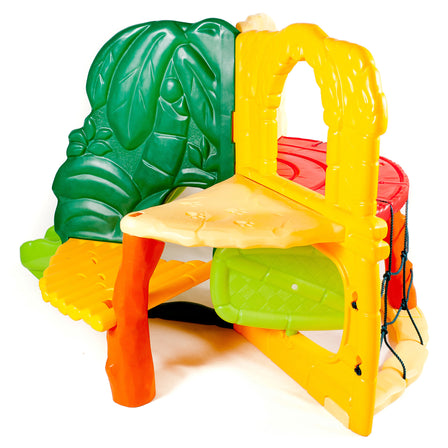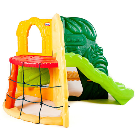 This expansive jungle climber is one of our best climbing frames for kids and ideal for encouraging active play in your cheeky little monkeys! Watch them cascade down the wavy slide and climb back up the cargo net to repeat the fun. Ground level openings connect each play area to the next via a secret getaway. Each section of play has a moulded jungle print effect on its wall to encourage sensory play and develop their creativity!